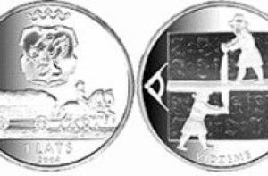 В тот же день Банк Латвии выпустил в обращение памятную серебряную монету «Латгале» достоинством один лат. На аверсе монеты на фоне латгальского пейзажа изображена Богоматерь с младенцем. В нижней части монеты имеются надписи «1 лат» и «2004». На реверсе монеты на фоне цветущего поля льна изображены крест, крестьянин и ангел и надпись «Латгале».