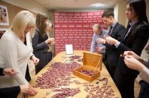 5 ноября 2012 года, накануне государственных праздников, работники Сейма заготовили большое количество красно-бело-красных ленточек.
