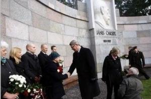 В тот же день на Лесном кладбище Риги после реставрации был открыт памятник первому президенту Янису Чаксте.