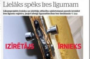 Газета Diena пишет, что в декабре правительство может рассмотреть новый законопроект о сдаче в наём жилых помещений. Потому что в последние время договоры об этом приводят к судебным разбирательством. О которых газета и рассказывает, публикуя короткую памятку, что нужно знать насчет договора о сдаче жилья. Атис Климович пишет o исходящих от самого Путина сигналах перестать издеваться на литовскими автоперевозчиками и надеется, что молочная война не перейдет в настоящую. Рядом миллионер Юлийс Круминьш рассказывает о новой политической силе и отношениях с Россией, и говорит, что ему хотелось бы перенести Памятник Освободителям и построить на его месте общественно значимое здание, но он боится. Еще в номере пишут, что никто не спешит занять пост министра среды и регионального развития, но если Партия реформ будет мешкать, то этот пост могут отдать СЗК.