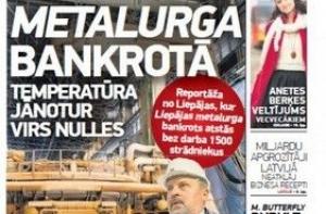 Газета Neatkarīgā пишет о банкротстве «Лиепайского металлурга», на котором все равно необходимо поддерживать температуру в сталеплавильной печи, чтобы она не превратилась в груду металлолома. Ещё в номере есть интервью с депутатом Рижской думы Байбой Брокой, кандидатом в министры юстиции. Она уверяет в законности увольнения нынешнего министра и в том, что не была администратором процесса неплатежеспособности санатория «Кемери», а всего лишь юрисконсультом. Ещё пишут, что скорее всего гроссмейстеру Каспарову не дадут латвийского гражданства, маловероятно, что депутаты поддадутся шантажу именитого шахматиста, считает газета. Она же опросила депутатов Сейма по другом поводу - о возможной прослушке их телефонных разговоров спецслужбами. Еще несколько лет назад это вызвало бы шумный скандал, но сейчас политики с этим смирились, делает вывод газета.