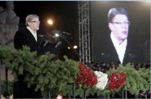 18 ноября 2011 года президент Андрис Берзиньш, обращаясь к собравшимся в Риге около памятника Свободы, подчеркнул значимость этого места в истории страны и призвал латвийцев искать не врагов, а единомышленников, так как только сообща можно построить сильное государство. Во время речи несколько человек в масках развернули плакаты: «Не врите, Латвия продана иностранным банкам», «Независимость потеряли, вступив в ЕС», «Кангаров на мыло».