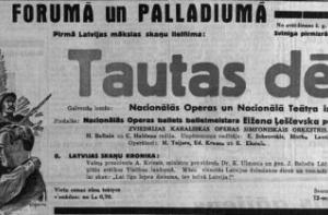 18 ноября 1934 года в рижских кинотеатрах «Форум» и «Палладиум» началась демонстрация первого латвийского полнометражного художественного фильма «Сын народа». «Картина за картиной на экране показывают судьбу нашего народа - через ужасы войны и большевиков до светлого возрождения 15 мая. На этом фоне разворачивается любовный роман Майи между латвийским офицером и большевистским комиссаром, но в конце Майя возвращается к своему народу» - писала газета «Ритс».
