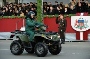 В параде, который прошел на набережной в Риге, приняли участие несколько сотен военнослужащих, а также военная техника.