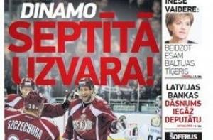 Газета Diena пишет о том, что хоккеисты рижского «Динамо» преодолели экватор. Впервые в середине сезона они находятся на третьем месте в Западной конференции НХЛ. И пока продолжают победное шествие. В рубрике «Спорт» газета оценивает игру наших хоккеистов. На второй странице Атис Климович предупреждает, что русский язык на референдуме и льготы в рижском общественном транспорте поддерживает один и тот же человек - мэр Риги, за которым стоит его партия. Еще в номере бывший начальник Дорожной полиции Эдмунд Зивтиньш говорит об отсутствии фоторадаров и нехватке кадров. А американский посол Марк Пеккала рассказывает про краудфа́ндинг или народное финансирование. Также пишут о попытках рижской думской оппозиции не допустить льготного проезда для рижан. И объясняют, что такое зеленые публичные закупки, то есть, приобретение товаров, дружественных окружающей среде.