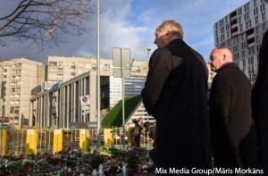 Сегодня в 10 часов утра во время минуты молчания в память жертв трагедии в Золитуде на месте катастрофы побывал президент Латвии, который возложил цветы у развалин торгового центра.