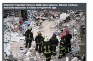 Газета Neatkarīgā пишет о политической ответственности. Обозреватель Бенс Латковскис приводит распространенный в социальных сетях вопрос: не будет ли стыдно премьеру Домбровскису говорить народу новогоднюю речь, если у него не было что сказать людям в такую трагическую минуту? Еще пишут о возможных фигурантах уголовных дел и о том, что катастрофа открыла мутную политическую культуру. А также об ответственности проектировщиков и строителей. И о том, как они оправдываются. Пишут о том, что люди теперь боятся ходить в магазины, а вот журналисты газеты сходили и внимательно осмотрели потолки и колонны. О чем и рассказывают.