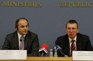 В тот же день Латвию впервые посетил с визитом министр иностранных дел Косово Энвер Ходжай (на фото - слева). Был подписан договор о сотрудничестве в сфере культуры. Латвия стала десятым по счету государством, признавшим Косово.
