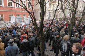 В тот же день у здания Сейма собрались сотни мотоциклистов, протестовавших против намерения повысить ежегодную пошлину на автотранспорт для владельцев мотоциклов с 3 до 24 латов.