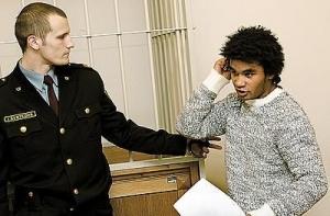 За то, что 17 октября 2004 года он явился в редакцию газету «Диена» и передал охраннику две листовки с призывом национал-большевиков «Давайте укажем место проклятому режиму или просто свернем ему шею». Таким образом, афролатвиец стал первым политическим заключенным Латвии в XXI веке.