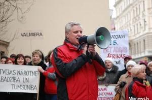 1 декабря 2009 года на профсоюзный пикет у здания Сейма Латвии собрались около полутысячи человек. Пикетчики держали плакаты и транспаранты «Мы - против бедности!», «На Parex и синагоги денег хватает, а для своего народа - нет! Эй, кангары, кому служите?», «Если курица несет золотые яйца, ее надо кормить, а не забивать!». Собравшиеся освистывали шедших на на внеочередное заседание Сейма депутатов. Передвигавшемуся с помощью трости депутату от Народной партии Карлису Лейшкалнсу некоторые пикетчики заявили, что травма ноги - наказание ему за плохую работу в Сейме.