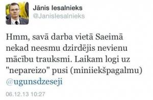 В Сейме никогда не слышал учебную тревогу, пишет в своем микроблоге Twitter член правления VL-ТБ/ДННЛ Янис Иесалниекс.