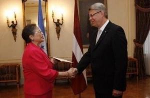 В тот же день в Рижском замке состоялась аккредитация чрезвычайного и полномочного посла Гондураса в Латвии Илианы Валески Пастор Мелхем (Iliana Waleska Pastor Melghem).