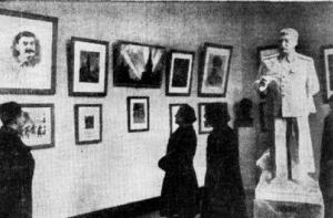 В тот же день газета «Циня» писала: «В государственном музее латышского и русского искусства открылась выставка «Сталин в изобразительном искусстве». В центре зала привлекает внимание выразительная скульптура художника Г.Кепинова «И.В.Сталин», которая недавно получена из Москвы. На снимке: посетители знакомятся с выставленными работами».