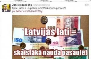 «Позволю себе сделать прогноз: еще наступит тот день, когда Латвия вернется к лату. Наши латики были и остаются самой красивой валютой в мире», - заявил Иесалникс.