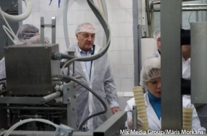 Президент Андрис Берзиньш перед встречей с Тоомасом Хендриком Ильвесом также посетил Руиенский молочный комбинат, где принял участие в дегустации мороженого.