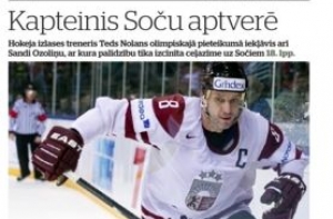 Газета Diena пишет, что наша хоккейная сборная в Сочи поедет с Сандисом Озолиньшем, с чьей помощью команда и получила путевку на Олимпиаду. На второй странице изображена кандидат в премьеры Лаймдота Страюма в виде Золушки. О ней же рассуждает политолог Филипп Раевскис, а остальные обозреватели пишут о ситуации в KNAB. Далее рассказывают о том, как проходит деление должностей в создаваемом правительстве и о том, что вчера состоялась очередная распродажа на аукционе имущества ликвидированного Крайбанка, но желающих купить не было. Также рассказывают о молодежных мероприятиях в Дни памяти баррикад. И о плане реэмиграции, который нужен только тем, кто сам уже решил вернуться. Высказываются и сами уехавшие, и эксперты. Есть цифры миграции жителей в Латвию и из неё. Получается, что в 2012 году приехало больше. Подробнее об этом -