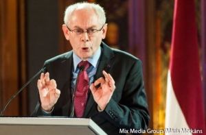 Ван Ромпей, со своей стороны, также считает, что Латвия успешно перешла на евро благодаря ответственному процессу подготовки под руководством Домбровскиса. Новая валюта принесет стране как политические, так и экономические преимущества, так как введет ее в ядро Европы и повысит сопротивляемость внешним факторам.
