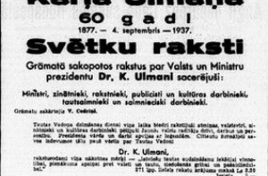 11 января 1938 года газета «Ритс» под рубрикой «Ценная книга» рекламировала сборник праздничных статей в честь 60-летия Карлиса Улманиса, которое широко отмечалось 4 сентября 1937 года. Статьи о главе государства и правительства были написаны министрами,учеными, писателями, публицистами, культурными и хозяйственными работниками. В день рождения Вождя Народа его современники написали воспоминания, деятели науки и культуры исследовали жизнь, труды и личность создателя Нового государства. Имя и труды президента овеяны легендами, утверждалось в рекламе. 371 страница, цена 3 лата 30 сантимов.