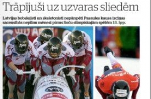 Газета Diena пишет об успехах наших бобслеистов и склетонистов накануне зимней Олимпиады. Обозреватели продолжают обсуждать бывших, будущих и потенциальных министров, особенно министра экономики Павлютса. Сохранить его - главная задача Партии Реформ, считает газета. В номере есть большое интервью с председателем Сигулдской краевой думы Угисом Митревичсом. В Сигулде тоже будут введены льготы на проезд для местных жителей. О чем председатель и рассказывает. Далее пишут о том, что судьба многоэтажного дома в Золитуде возле рухнувшей «Максимы» все еще не ясна. Проект дорогой, может быть, и сдадут в эксплуатацию. А вот ценность санатория в Кемери понизилась.
