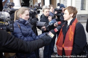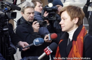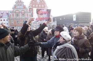 «Мы все собрались здесь, чтобы потребовать отставки мэра Риги Нила Ушакова, но я готова пообщаться со всеми, кто пришел на пикет, поскольку демократия позволяет выражать любые точки зрения», - сказала Элерте в интервью MIX TV.