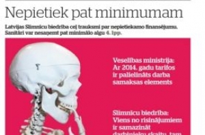 Газета Diena пишет о недостаточном финансировании больниц, санитары могут не получить минимальную зарплату. А сокращению работников противятся профсоюзы. Еще пишут о визите в Ригу верховного представителя Евросоюза по вопросам внешней политики и политики безопасности, вице-президента Еврокомиссии баронессы Кэтрин Эштон. Еще пишут о финансовой стороне мероприятий открытия Культурного года в Риге. Есть также оплаченный печально известным доктором Слуцисом текст - американский доктор призывает открыть «мешки ЧК», чтобы Россия не могла шантажировать латвийских политиков. В номере есть приложение для пенсионеров. Там рассказывают, как жить сегодняшним днём, а также пишут о том, как советские органы госбезопасности влияли на латышское самосознание.