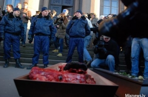 В тот же день у здания Кабинета министров собрались крестьяне, требовавшие поддержки со стороны государства. К зданию правительства под звуки похоронного марша привезли гроб, в котором лежали отрубленые коровьи головы. Это символизировало похороны молочной отрасли.