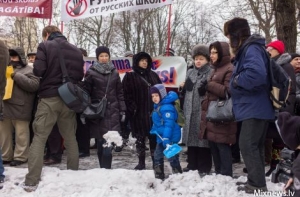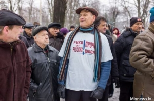 По данным специального корреспондента mixnews.lv, в пикете приняли участие около 200 человек, практически сразу после начала мероприятия к протестующим вышла министр образования и науки Ина Друвиете и побеседовала с представителями Русского союза Латвии Александром Филеем и Мирославом Митрофановым.