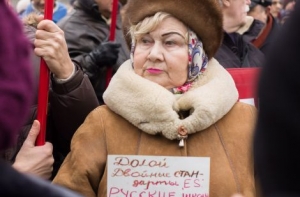 Участники протеста скандировали лозунги «Позор!» и «Руки прочь от русских школ!», и держали в руках плакаты с надписями «Страуюма, оставь детей в покое», «Stop discrimination», «Долой языковой террор» и прочими.