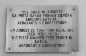 В тот же день в Риге у здания Патентного управления на ул.Цитаделес была открыта мемориальная доска «Лестница в небо», в память о первом в Латвии полете человека на воздушном шаре. 30 августа 1804 года в небо над Ригой на воздушном шаре поднялся бельгийский аэронавт профессор Гаспар Этьен Робертсон. Его шар долетел до тогдашней территории Ропажи.