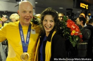 Стоит добавить, что из официальных лиц встречать латвийских спортсменов приехала министр образования и науки Ина Друвиете («Единство»).