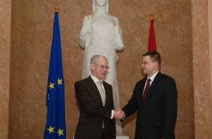 В тот же день президент Совета ЕС Херман ван Ромпей после встречи с главой латвийского правительства Валдисом Домбровскисом поздравил Латвию с введением долгосрочных структурных реформ и мер консолидации.