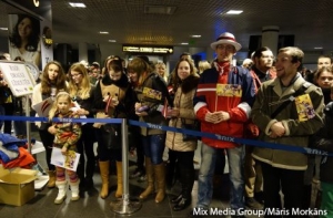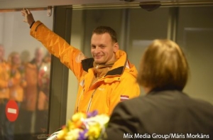 В понедельник вечером в Рижском аэропорту приземлился самолет Минск-Рига с латвийскими олимпийцами на борту. Домой вернулись братья Дукурсы - серебряный призер Олимпиады Мартин Дукурс и обладатель четвертого места Томасс Дукурс.