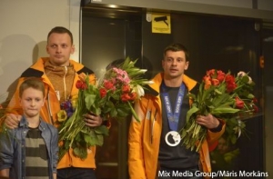 Пришедшие встречать олимпийцев скандировали «Молодцы». Ребята были буквально усыпаны цветами. В разговоре с журналистами MixTV тренер и отец Дукурсов - Дайнис Дукурс - еще раз отметил, что Александр Третьяков был сильным соперником и победа его была честной.