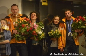 Вместе с олимпийцами в Латвию вернулись и все остальные члены олимпийской команды скелетонистов, а также тренеры.