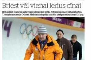 Газета Diena пишет про латвийских бобслеистов, готовящихся к соревнованиям четверок. На второй странице рассказывают, как минблаг собирается компенсировать малоимущим жителям подорожание электроэнергии. Далее сообщают, что оставшаяся без работы руководительница бюро экс-премьера устроилась в правление аэропорта «Рига». Газета продолжает рассказывать, как живет норвежская молодежь, о программе удержания молодых людей в регионах. В зарубежных новостях - о столкновении интересов России и ЕС на Украине. В приложении для пенсионеров рассказывают о пансионате «Лауциене», в рубрике «Домашние животные» - о любимых зверях депутата Ингмарса Лидаки, особенно он любит бобра по имени Чапиньш, фотография прилагается. В олимпийском приложении оценивают игру наших хоккеистов и надеются на бобслеистов.