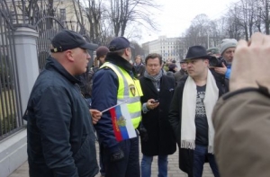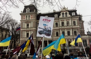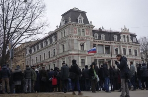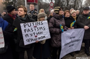 Около 500 человек приняли участие в пикете около здания посольства России в Латвии. Участники требовали не допустить ввода российских войск на Украину.