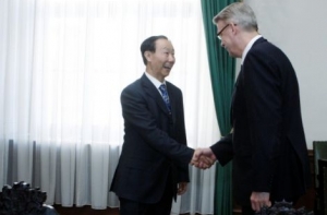 с заведующим Отделом международных связей ЦК Коммунистической партии Китая Ван Цзяжуем.