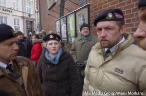Также у собора присутствуют представители эстонского ополчения и представители антифашистских организаций Германии. На Домской площади появился известный националист Айвар Гарда с букетом цветов.