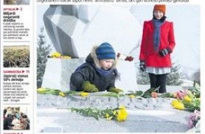 А газета Latvijas Avīze пишет, что легионерам большую боль причиняет не ругань так называемых антифашистов, а трусость правительства. А вот на Западе, наоборот, растет понимание. На второй странице опрошенные военнослужащие призывают крепить обороноспособность, а еще есть статья бывшего министра Цилинскиса, который объясняет, почему участвовал в шествии 16 марта, что, по его мнению, угрожает латвийской государственности и чему учит Майдан. А писательница Марина Костенецкая заявляет, что деятели культуры, поддержавшие Путина, предали Родину. Есть также карикатура с русским медведем, на растерзание которому «Виенотиба» кинула маленького Цилинскиса.