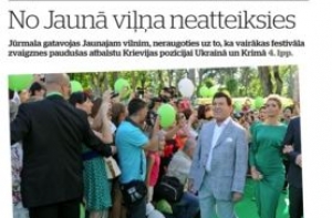 Газета Diena сообщает, что Юрмала готовится к следующей «Новой волне», хотя многие звезды российской эстрады поддержали Путина в крымском вопросе и теперь, возможно, их в Латвию не пустят. Вот и министр культуры говорит, что «Новая волна» не нужна. И министр иностранных дел считает, что внешнеполитическая ситуация не позволяет. На второй странице комментатор Мадзиньш упрекает евродепутата Татьяну Жданок в идеологической ненависти и в том, что она получает евродепутатскую заплату, а сама ездила наблюдателем на крымский референдум. Далее сообщают, что депутаты Рижской думы во вторник решили возобновить членство столицы в Союзе самоуправлений и выбрали своих представителей в руководство Союза, среди которых не оказалось никого из партии «Виенотиба». Далее газета продолжает атаку на Татьяну Жданок.