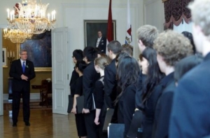 В тот же день президент Валдис Затлерс встретился в Рижском замке с хором Вашингтонского университета.