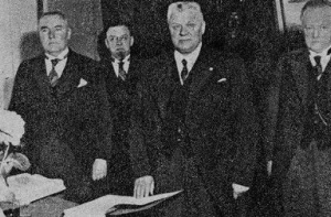 полномочия президента Латвии. В 10.30 в Белом зале Рижского замка президент Альберт Квиесис расписался в замковой книге о сдаче должности, а президент министров Карлис Улманис - о ее принятии. Позже состоялись торжественное заседание правительства, возложение венков на Братском кладбище и богослужение.