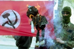 11 апреля 2001 года у посольства Латвии в Киеве прошел несанкционированный пикет представителей национал-большевистской партии - у здания посольства собралось около 20 национал-большевиков, которые выкрикивали различные лозунги, в том числе и на ломаном латышском языке «Да здравствует советская Латвия!». А ночью на стенах здания посольства и расположенного напротив дома появились оскорбительные надписи. Пикетирующие сожгли латвийский флаг и куклу президента Латвии, после чего сделали попытку расписать забор возле посольства, но попытка была пресечена милицией.