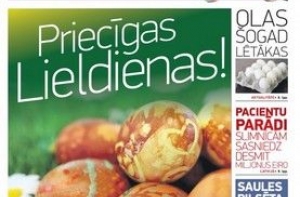 Ещё пишут о снижении цен на куриные яйца и о том, как зима повлияла на плодовые деревья и садовые культуры. Также пишут о долгах пациентов больницам за лечение. Точной цифры у Минздрава нет, но это примерно 10 миллионов евро, сообщает газета. Есть также большое интервью с директором департамента сообщений Рижской Думы Кришьянисом Петерсом, который рассказывает о том, какие ремонтные работы начнутся в Риге и где именно. Далее - интервью с архиепископом лютеранской церкви Янисом Ванагсом. Он рассказывает, что слышал от патриарха Кирилла националистические высказывания, но не считает, что национализм это всегда плохо. И высказывает прочие философские суждения. Далее новости культуры, рассказ про город Шауляй и расписание пасхальных мероприятий.