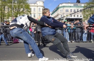 Сегодня, 4 мая, в годовщину восстановления независимости Латвии, в Риге уже в третий раз прошли соревнования по перетягиванию каната между жителями правого и левого берегов Даугавы.