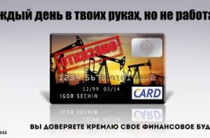 В оформлении поста использован коллаж якобы заблокированной кредитной карты президента государственной нефтяной компании «Роснефть» Игоря Сечина, которого считают другом президента России Владимира Путина.