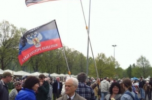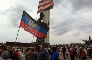 Во время празднования 69-ой годовщины разгрома нацизма в парке Победы, к месту проведения мероприятия подошел общественный и политический активист Владимир Линдерман с группой людей, державших в руках флаги так называемых Донецкой и Луганской республик, а также с флагом цветов георгиевской ленточки.