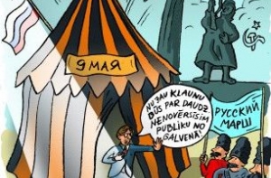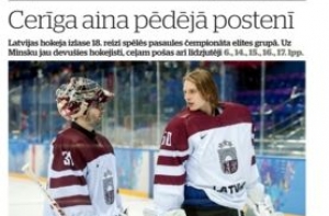 Газета Diena пишет о надеждах на латвийскую хоккейную сборную. На второй странице художник Буравцовс изобразил празднование 9 мая в виде балагана.