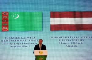 14 мая 2013 года В дворцовом комплексе президента Туркмении «Огузхан» состоялась торжественная встреча президента Латвии Андриса Берзиньша, который прибыл в эту страну с двухдневным официальным визитом. Берзиньша приветствовал президент Туркменистана Гурбангулы Бердымухамедов. Он подчеркнул, что у него остались очень хорошие воспоминания о визите в Латвию в сентябре прошлого года. В тот же день президент Берзиньщ открыл латвийско-туркменский бизнес-форум.